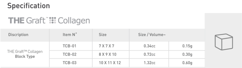 THE Graft™ Collagen, a form of block and ring composed of the porcine-derived bone mineral matrix from cancellous bone and atelocollagen from porcine tendon, is a material used to fill, augment, and/or reconstruct periodontal, oral, and maxillofacial defects.
